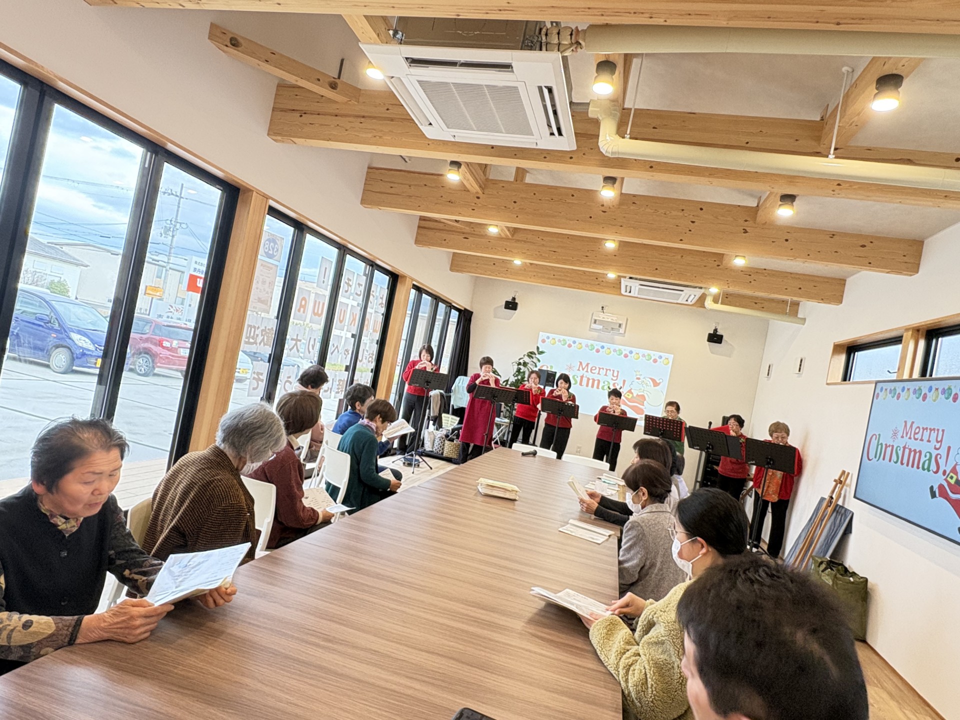 オカリナ演奏を聴いたり、皆さんで一緒にハンドベルで演奏したり、