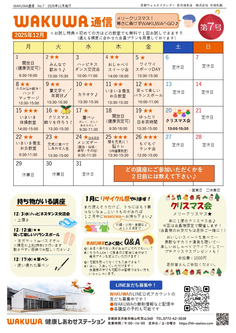 WAKUWA通信第7号12月のカレンダーです。